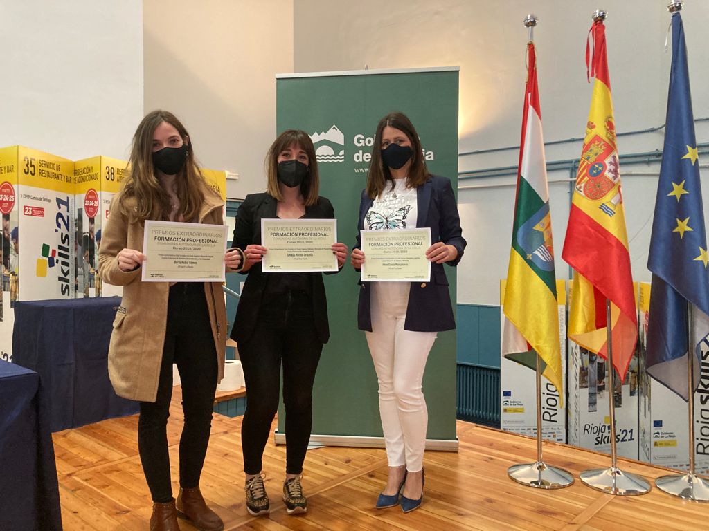 Las premiadas son Irene García Manzanares que ha obtenido premio extraordinario en el Ciclo de Grado Superior de Transporte y Logística (Familia Profesional Comercio), Omayra Merino Odriozola ha sido galardonada con el premio extraordinario en el Ciclo de Grado Superior de Estilismo y Dirección de Peluquería (Familia Imagen Personal) y por último Berta Rubio Gómez obtiene también premio extraordinario en el Ciclo de Grado Superior de Educación Infantil (Familia Servicios socioculturales y a la Comunidad).